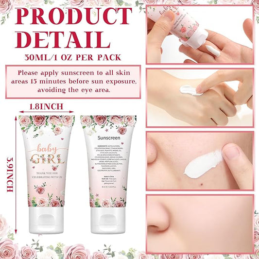36 Sets Sunscreen for Baby Shower Party Favors SPF 30 Baby Shower Mini Sunscreen Lotion 1 oz Resistant Travel Sunscreen Bulk Thank You Gifts for Guest Party Supplies(Baby Girl)