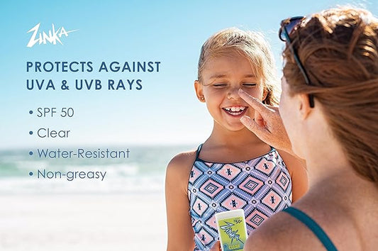 Zinka Sunny Days Family Pack - SPF 30/50 - UVA & UVB Sunscreen Protection for Face, Body, Lips - Water Resistant, Oil Free, No Parabens - (3) Nosecoats, (2) Lotions, (2) Face Sticks, (2) Lip Balms