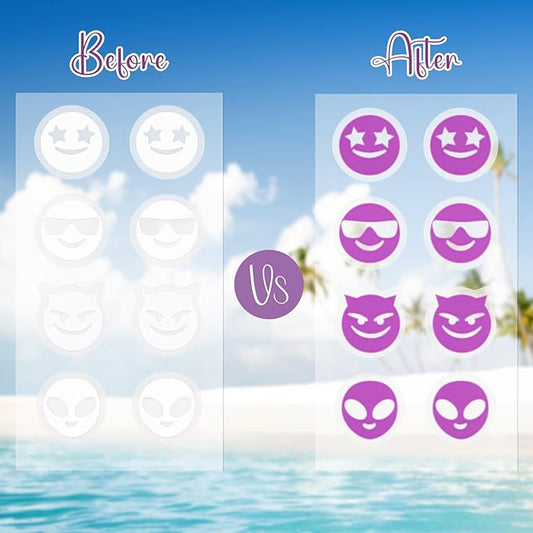 UV Stickers for Sunscreen - 40 Count UV Detection Stickers, Know When to re-Apply Sunscreen, UV Stickers Safe for Kids Age 3+, 4 Pattern Types for Boys & Girls