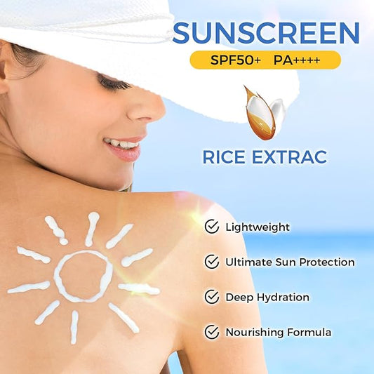 Rice Sunscreen, Face Sunscreen SPF 50, Sunscreen for Face & Body, Long-Lasting Daily & Travel Sun Block, All Skin Types