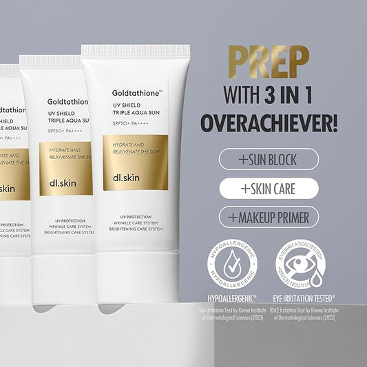 Goldtathione Sun Skin Care Triple Aqua Sun Block Face Lotion with SPF 50+ PA++++ Hydrating & Rejuvenating Face Moisturizer Korean Sunblock Day Cream w/Double Fine Line Care (1.69 fl oz)