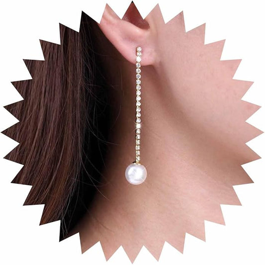 Vintage Rhinestone Pearl Drop Earrings Gold