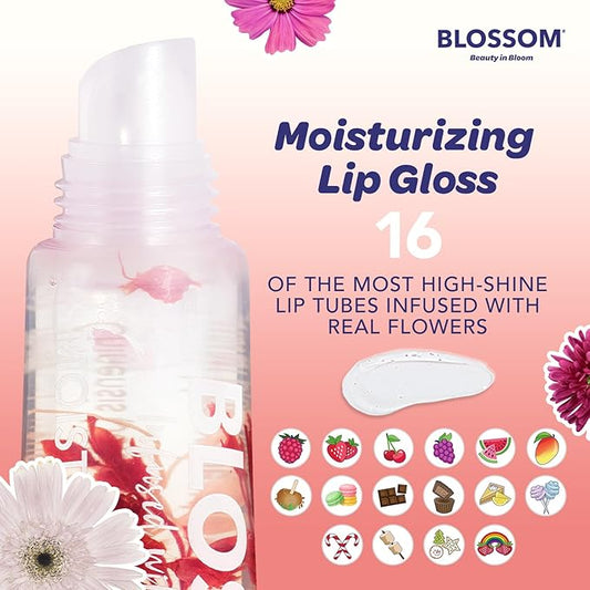Blossom Scented Moisturizing Lip Gloss Tubes, Infused with Real Flowers, 0.3 fl. oz/9ml, Candy Cane