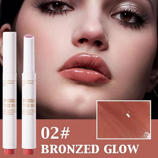 Moisturizing Solid Lipstick Non Sticky Lipstick, Moisturizing Lipstick Glossy Tinted Lip Balm,Long Lasting Non-Stick Lip Gloss Cute Makeup,High-gloss for Plumper Looking Lips,Vegan,Bronzed Glow (02#)