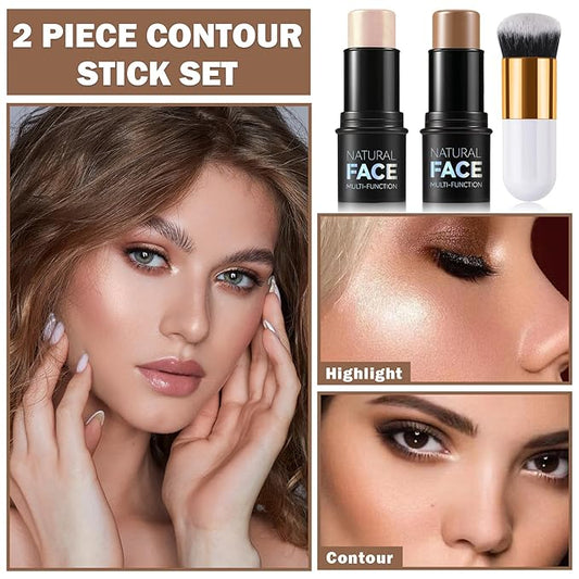 Bronzer Stick Highlighter Stick Cream Contour Stick Makeup,2PCS Beginner-Light Medium