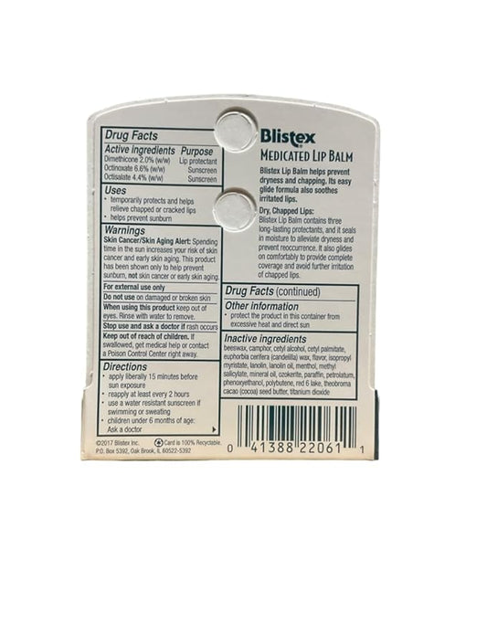 Blistex Medicated Lip Balm with SPF Lips,0.15