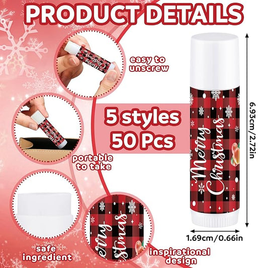 Dunzy 50 Pcs Christmas Lip Balm Moisturizing