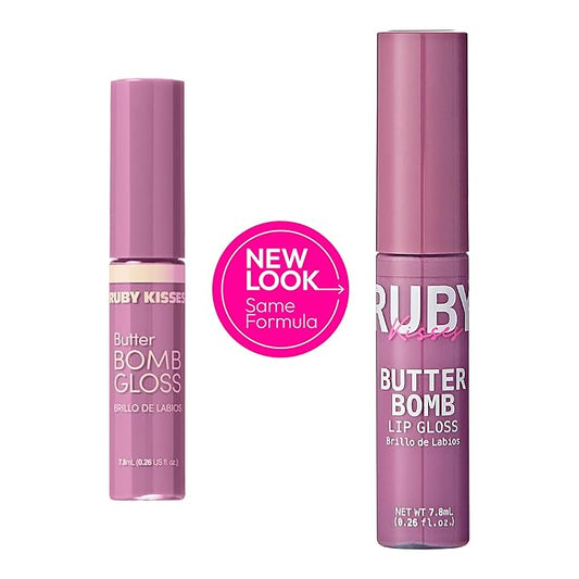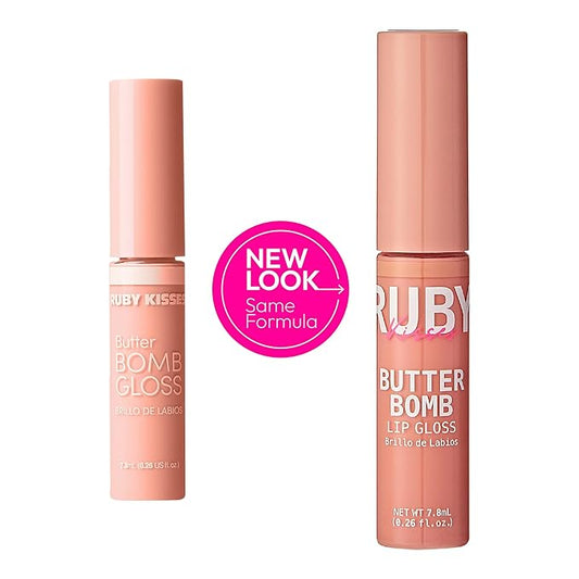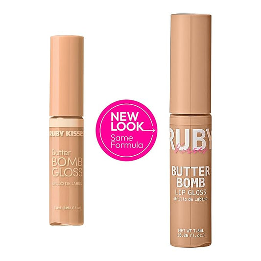 Ruby Kisses Lip Gloss Butter Bomb Gloss Non-Sticky Lip Gloss Vitamin E Natural Nude Lip Makeup - 7.8mL (0.26 US fl.oz) (Butter Bomb)