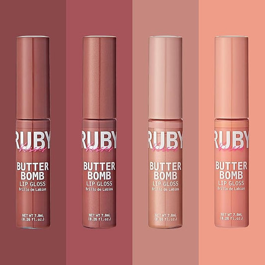 Ruby Kisses Lip Gloss Butter Bomb Gloss Non-Sticky Lip Gloss Vitamin E Natural Nude Lip Makeup- 7.8mL (0.26 US fl.oz) (Blind Date, Beau, Gloss, Babydoll)