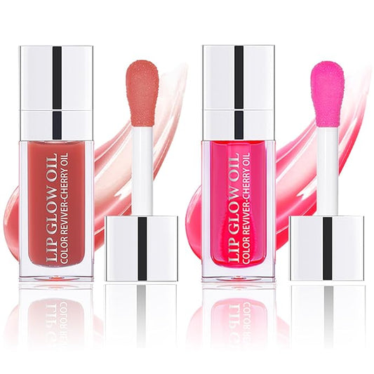 Plumping Lip Oil, Hydrating Lip Gloss Tinted Lip Balm Transparent Lip Care, Big Brush Head Glitter Shine, Long Lasting Nourishing Non-sticky Fresh Texture Cherry+Rosewood