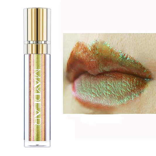 Maydear Chameleon Lipstick, High Pigmented Green Lipstick for Women Metallic Shine Lip Gloss, Full-Coverage Multichrome Lipstick Long Lasting Rainbow Lip Makeup, Golden Green(05)
