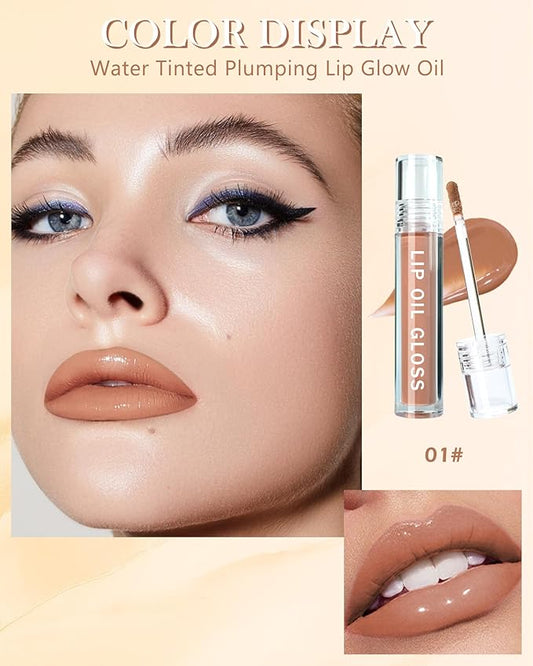 Hydrating Lip Tint Stain-1Pcs Tinted Plumping Lip Glow Oil, Moisturizing Water Lip Stain Makeup, Pigmented Non-Sticky Vegan Lip Gloss, Multi-Use Lip & Cheek Tint, Nude Glossy Finish, Cruelty Free-01#