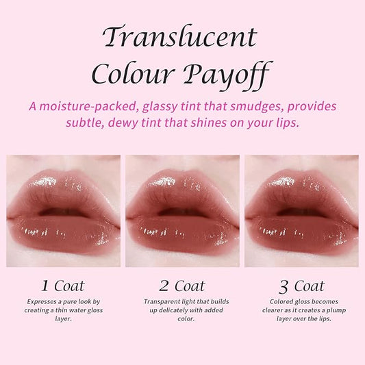 KIMUSE Gleamy Gloss Lip Stain Set, Long-lasting Lightweight Glow Lip Tint, Non-sticky Moisturizing Juicy & Glossy Finish