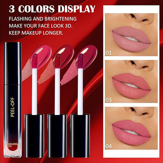 3 Colors Peel Off Lip Liner Stain, Peel Lip