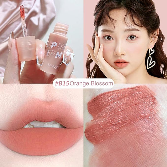 Matte Ink Lip Tint Stain, Lip Mud, Lasting Non-Stick Cup Matt Lip Gloss, Korean Liquid Lipcolor Makeup, Cheeky, Rose Nude Lipstick for Women (B15# Orange Blossom)