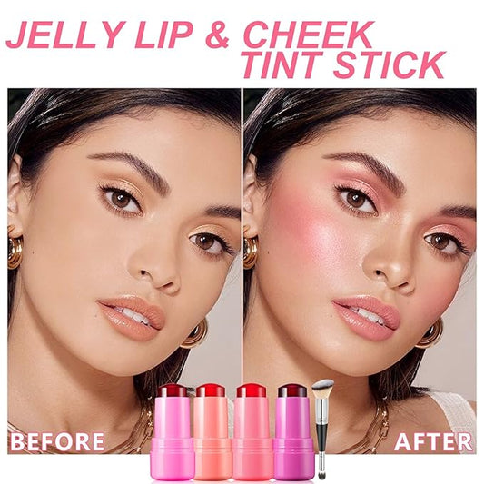 4 Pcs Cooling Water Jelly Tint, Multi-Use Jelly Lip & Cheek Tint Stain, 3-in-1 Milk Jelly Blush Lip Gloss Buildable Watercolor Finish 1,000+ Swipes Per Stick - Cruelty Free (4PCS)