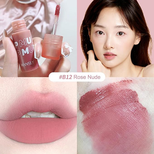 Matte Ink Lip Tint Stain, Lip Mud, Lasting Non-Stick Cup Matt Lip Gloss, Korean Liquid Lipcolor Makeup, Cheeky, Rose Nude Lipstick for Women (B12# Rose Nude)