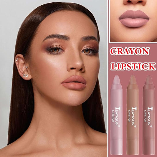 3 Pcs Matte Nude Lipstick Set,Lip Crayon Lipstick Gloss