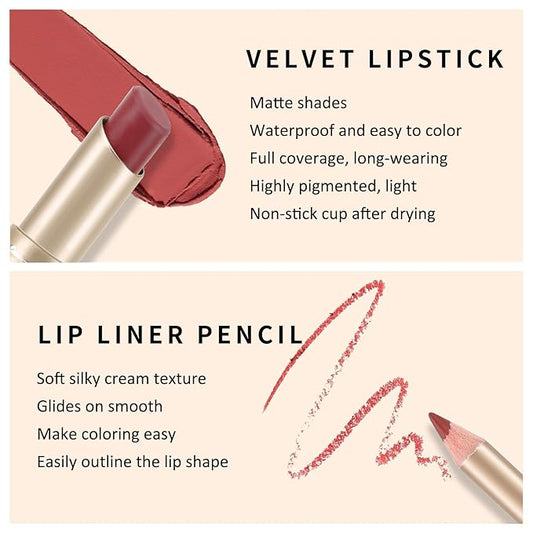 Liquid Matt Lipstick Lipliner Lip Crayons Pack Set,Velvet Makeup,Waterproof&Waterlasting,C