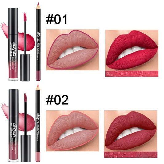 2 Colors Liquid Matte Lipstick and Lipliner Pack Set, Lip Tint Long Lasting 24 Hour Waterproof Velvet Nonstick Cup Lipgloss Lip Stain Pigmented Lip Makeup Gift Sets for Girls and Women Labiales
