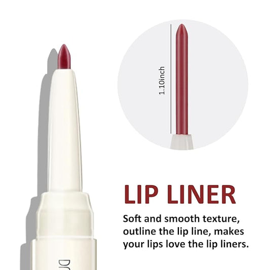 Boobeen Double-ended Lipstick Lip Liner Makeup Velvet Lipgloss Lipstick, Creamy Lip Pencil for Women Matte Long-lasting Matte Satin Finish, Nourishing and Non-fading