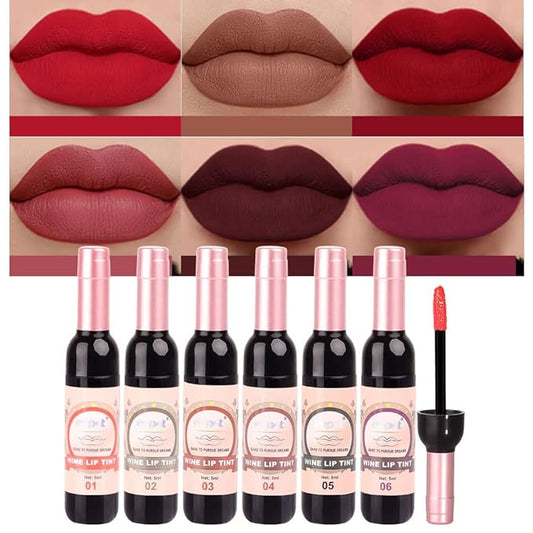 6 Colors Matte Red Wine Liquid Lipstick Pack Set,Wine Lip Tint Long Lasting 24 Hour Waterproof Velvet Nonstick Cup Lipgloss Lip Stain Pigmented Lip Makeup Gift Sets for Girls and Women Labiales