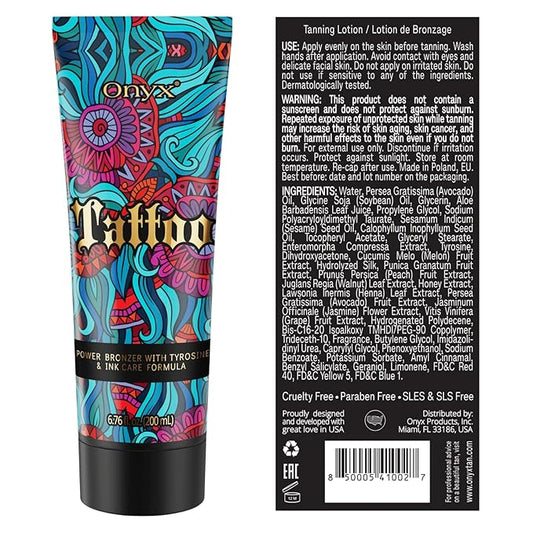 Onyx Tattoo Tanning Lotion with Fade Protection Ink Care & Color Booster Formula | Tattoo Tanning Lotion for Men and Women with Fruit Extract | Tattoo Lotion for Indoor and Outdoor Use - 6.76 FL/OZ