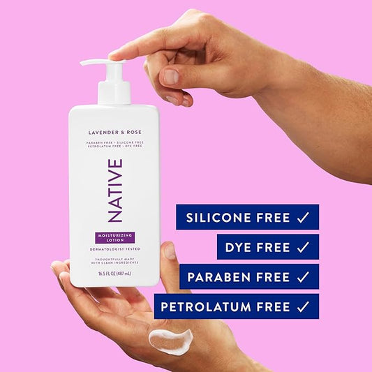 Native Body Lotion Contains Naturally Derived Plant-Based Moisturizers for Women and Men | Restores Dry Skin, Lavender & Rose, 16.5 fl oz