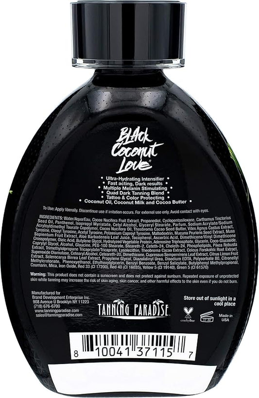 Tanning Paradise Black Coconut Love Tanning Lotion | Coconut Oil | Age-Defying | Tattoo Protecting Formula | Ultra Hydrating Dark Tanning Lotion, 13.5oz