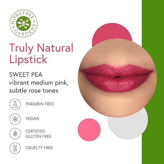 Honeybee Gardens Truly Natural Long Lasting Lipstick, Sweet Pea Lipstick, Vibrant Medium Pink, Naturally Hydrating & Nourishing, Vegan, Gluten-Free & Cruelty-Free, 0.13 oz / 3.8 g
