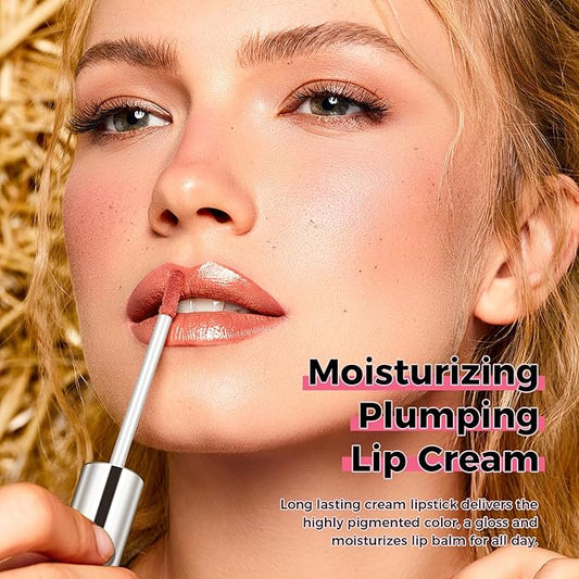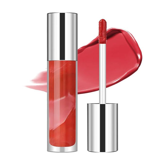 Magic Lip Gloss Plumper, Peach Silky Plumping Lip Gloss Tint, Long-lasting Marble Liquid Lipstick, Hydrating Non-Sticky Lip Oil, Moisturizing Plumping Lip Gloss