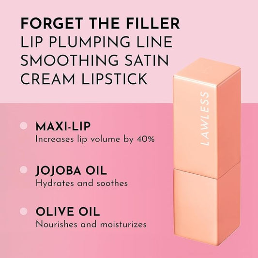 LAWLESS Forget the Filler Lip-Plumping Line-Smoothing Satin Cream Lipstick - Minx - Natural Ingredients Smooth and Hydrate Lips for a Plumper, Fuller Look - 3.7g