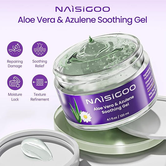 Aloe Vera Gel Soothes Skin for After IPL Laser Hair Removal Women Men in Face or Body, Travel Aloe Vera Gel for Sunburn Relief, Hydrate and Moisturize, Chamomile Extracts, 4.1 fl oz