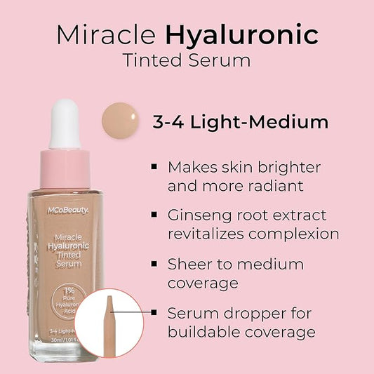 MCoBeauty Miracle Hyaluronic Tinted Serum, 3-ight/Medium, Hydration & Free Cosmetics 4 L