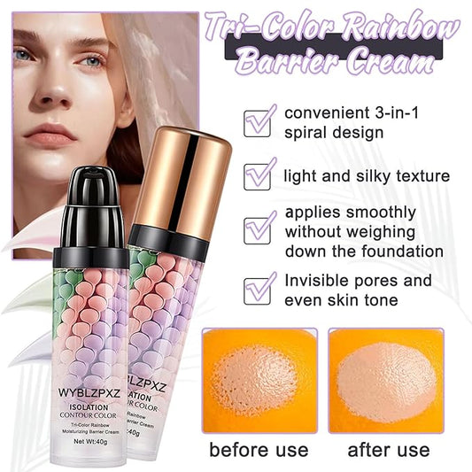 2PCS Tri-color Color Corrector Isolation Cream,One Step Color Correcting Foundation