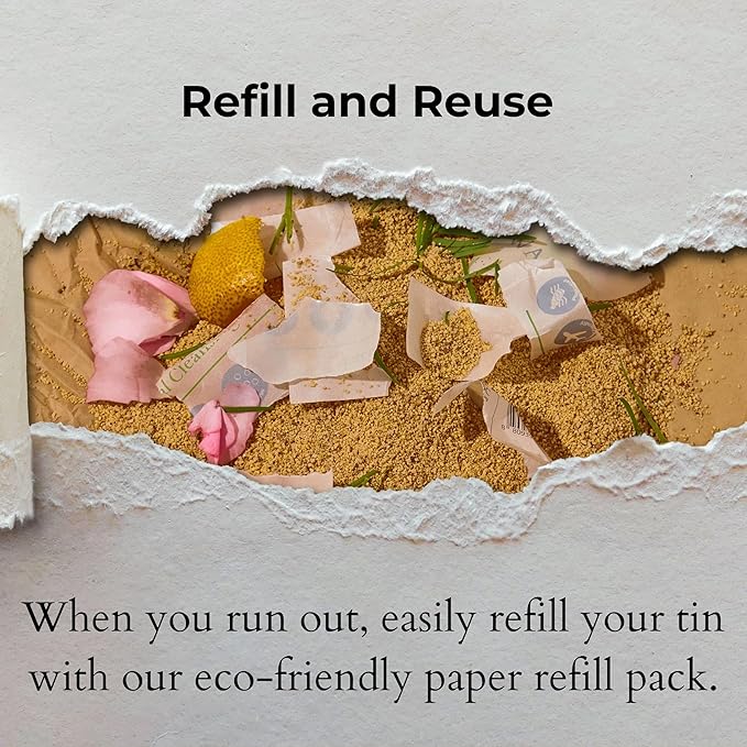 • Eco-Friendly Packaging: Packaged in a stylish, reusable tin and biodegradable refill packs, our tablets eliminate plastic waste and support a zero-waste lifestyle.