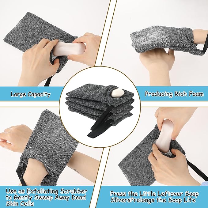 • 【Good Exfoliation】Soap exfoliating bag does not damage the skin, exfoliation helps remove dead skin and acne, perform deep cleansing, and make the skin look brand new. Very soothing to the skin, leaving you with younger, firmer skin.