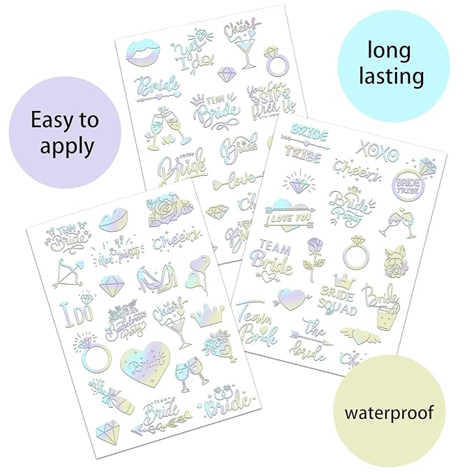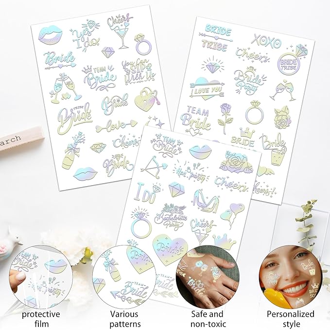 • Variety Pack: Includes 60 styles of bachelorette party temporary tattoos for endless fun.