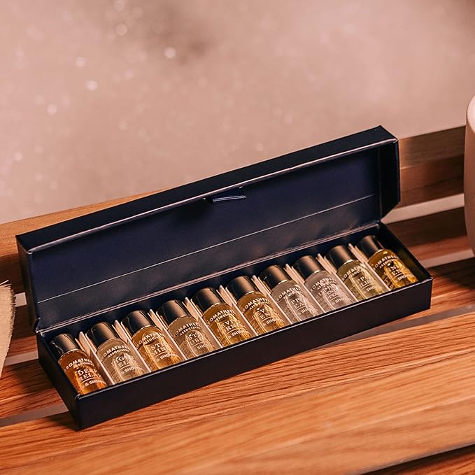 • Aromatherapy Gift Set for Relaxation: This gift set includes over 20 experiences with mini body oils; Each blend of natural oils helps relieve muscle tension, support restful sleep, and provide skin hydration, making it perfect for relaxation and stress relief