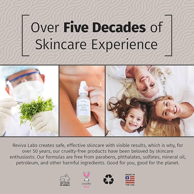• PERSONALIZED CARE - With every purchase, you receive a personalized virtual skincare consultation to help you maximize the full benefits of this product and the entire Reviva Labs skincare range tailored to your unique skin needs.