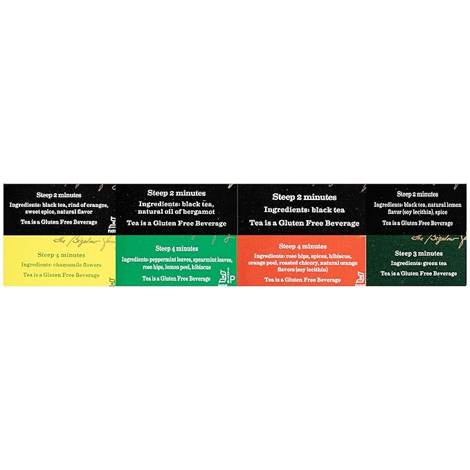 • A Tea For Every Occasion: This well-rounded variety pack includes Constant Comment, Earl Grey, English Teatime, Lemon Lift, Cozy Chamomile,Mint Medley, Orange and Spice. Choose between black, green and herbal teas