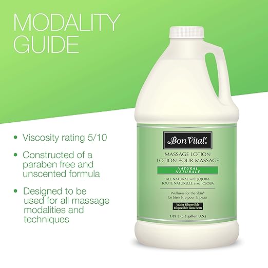 Bon Vital' Naturale Massage Lotion with Natural Ingredients for Earth-Friendly Massage, All Natural Moisturizer, Relieves Muscle Soreness and Increases Circulation, 1/2 Gal, Label may Vary