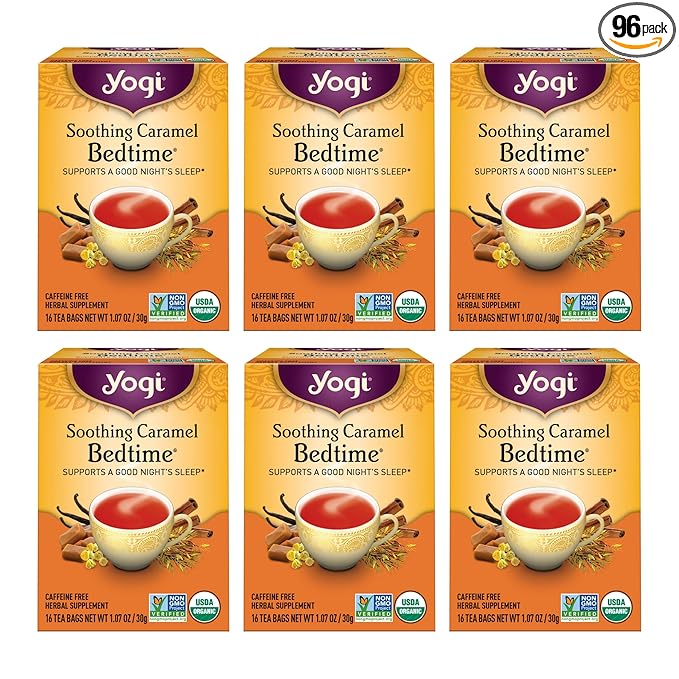 Yogi Tea Soothing Caramel Bedtime Tea - 16 Tea Bags per Pack (6 Packs) - Calming Sleep Tea - Supports Good Sleep - Includes Chamomile Flower, Rooibos Leaf, Roasted Chicory Root & More
