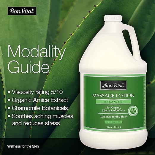 Bon Vital' Organica Massage Lotion with Certified Organic Ingredients for an Earth-Friendly Massage, Natural Moisturizer Lotion for Soothing Back & Neck Massages, 1 Gal, Label may Vary