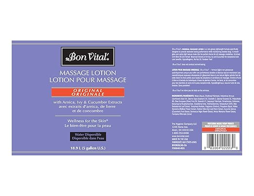 Bon Vital" - BVORIGL5G Original Massage Lotion for a Versatile Massage Foundation to Relax Sore Muscles & Repair Dry Skin, Lightweight, Non-Greasy Formula to Moisturize and Repair Dry Skin, 5 Gallon Pail