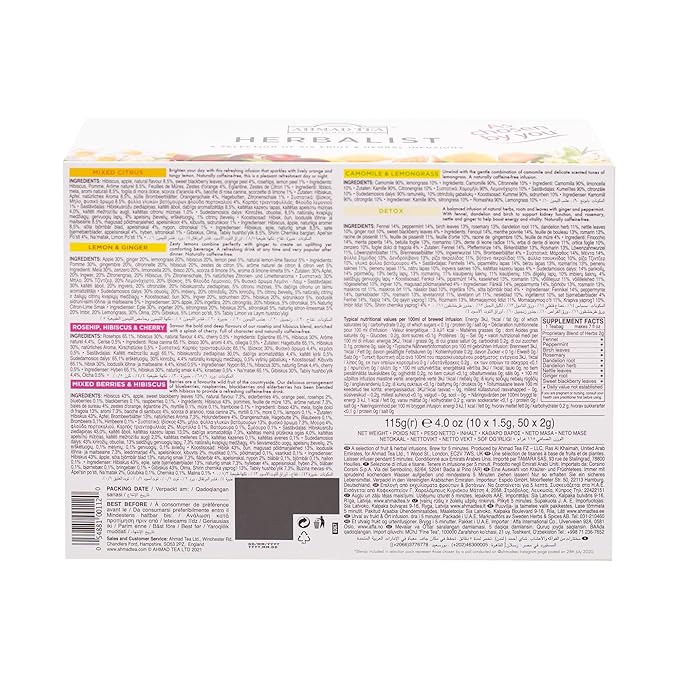 • BREWING YOUR TEA – The Herbalist box contains 10 foil-enveloped teabags of each variety (Camomile & Lemongrass, Mixed Citrus, Rosehip, Hibiscus & Cherry, Detox, Lemon & Ginger, Mixed Berries & Hibiscus; 60 teabags total). Steep according to the recommended time on each pack. Perfect for serving hot or iced.