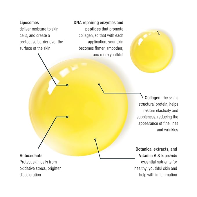 • PREMIUM INGREDIENTS: This non-greasy formula penetrates deeply with a potent blend of active ingredients, including DNA repairing enzymes and peptides to firm and smooth skin at a cellular level.