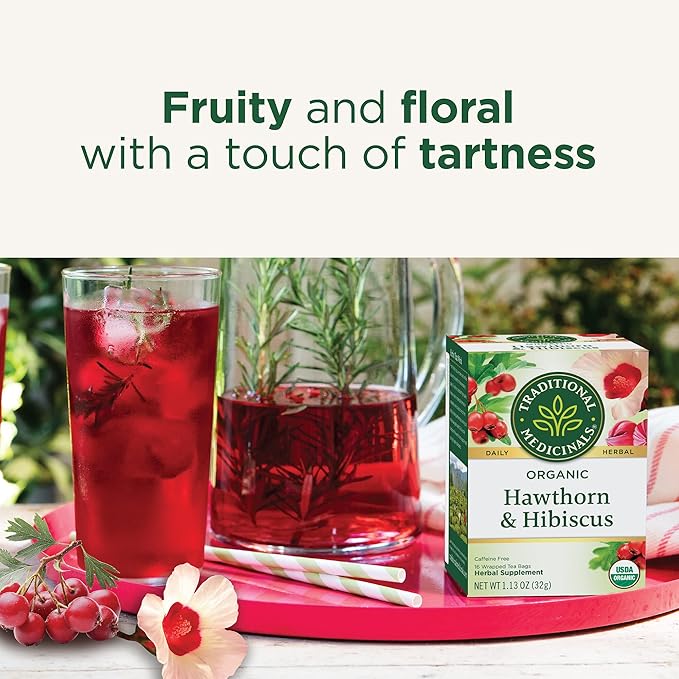 Traditional Medicinals Tea, Organic Hawthorn & Hibiscus, Promotes Heart Health, 96 Tea Bags (6 Pack)