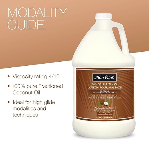 Bon Vital' Coconut Massage Lotion with 100% Pure Fractionated Coconut Oil, Lightweight Massage Lotion, Provides a Massage, Intense Skin Hydrating and Moisturizing, 1 Gal, Label may Vary