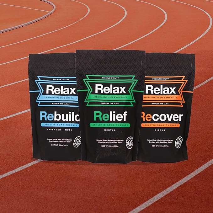 Relax Spa & Bath, Epsom & Dead Sea Salts, Aromatherapy Bath Salts for Hot Tub, Bath, or Spa, Infused with Magnesium, 3 Pack, Athletic Soak Therapy